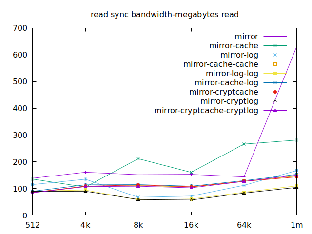 "<(sed -n '/^mirror-cryptcache-cryptlog\t/p' read-sync.dat)" using 3:xticlabels(2) with linespoints title 'mirror-cryptcache-cryptlog', \
